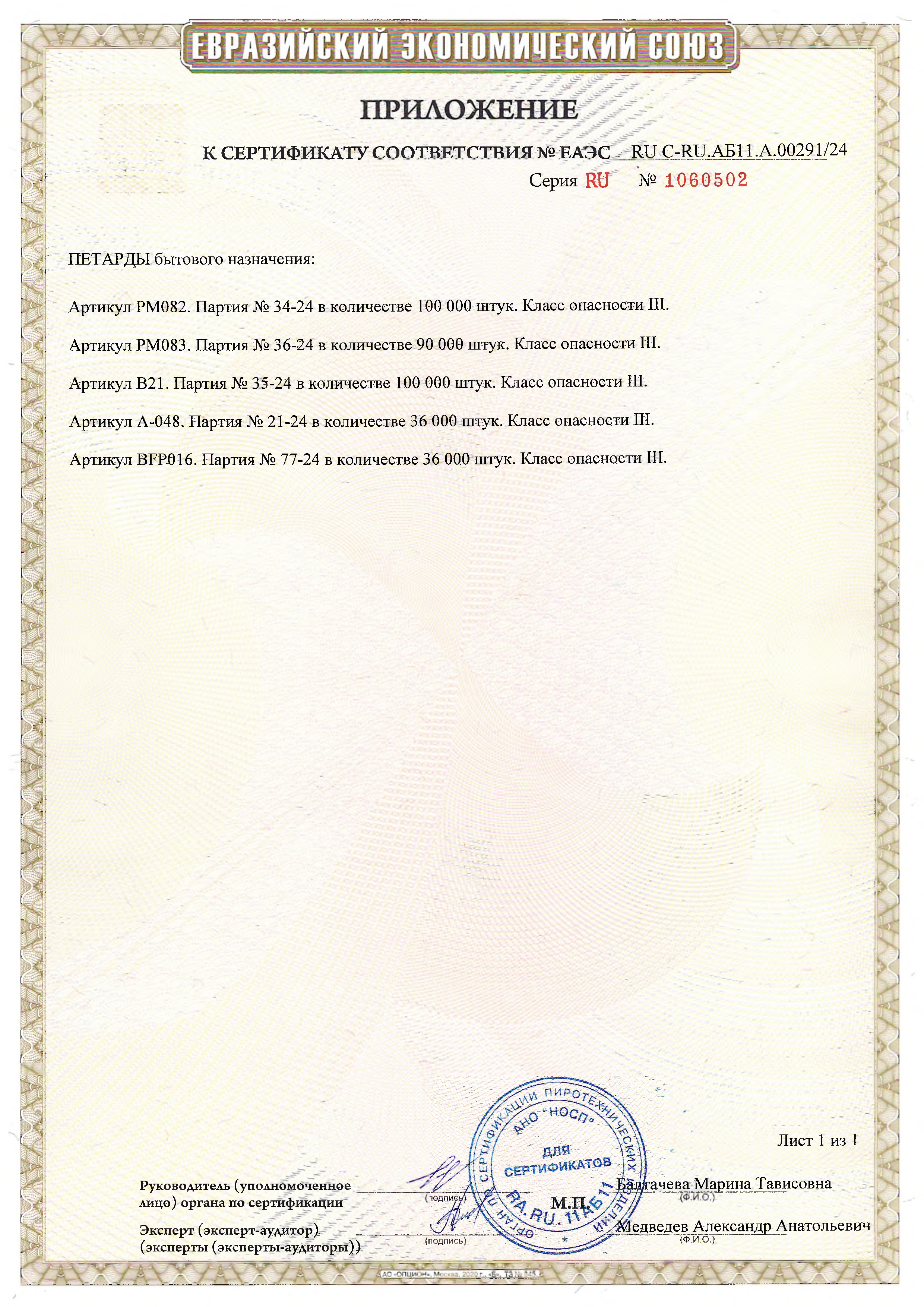 | Тип петарды: | Корсары |