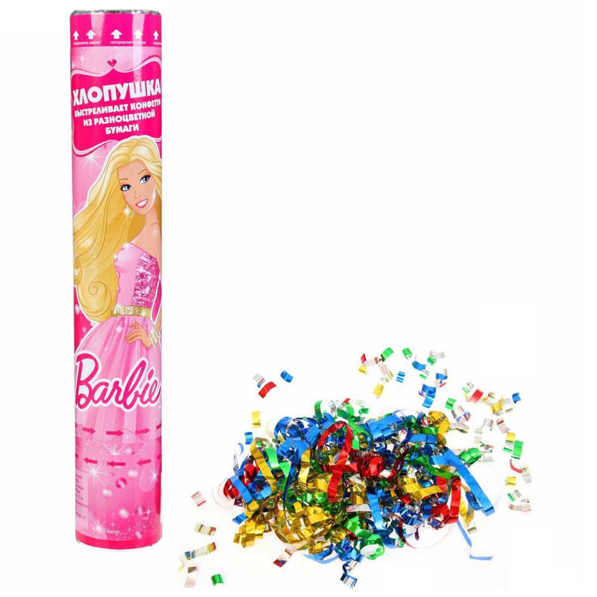 Пневмохлопушка Барби / Barbie (конфетти и серпантин, фольга) 30см