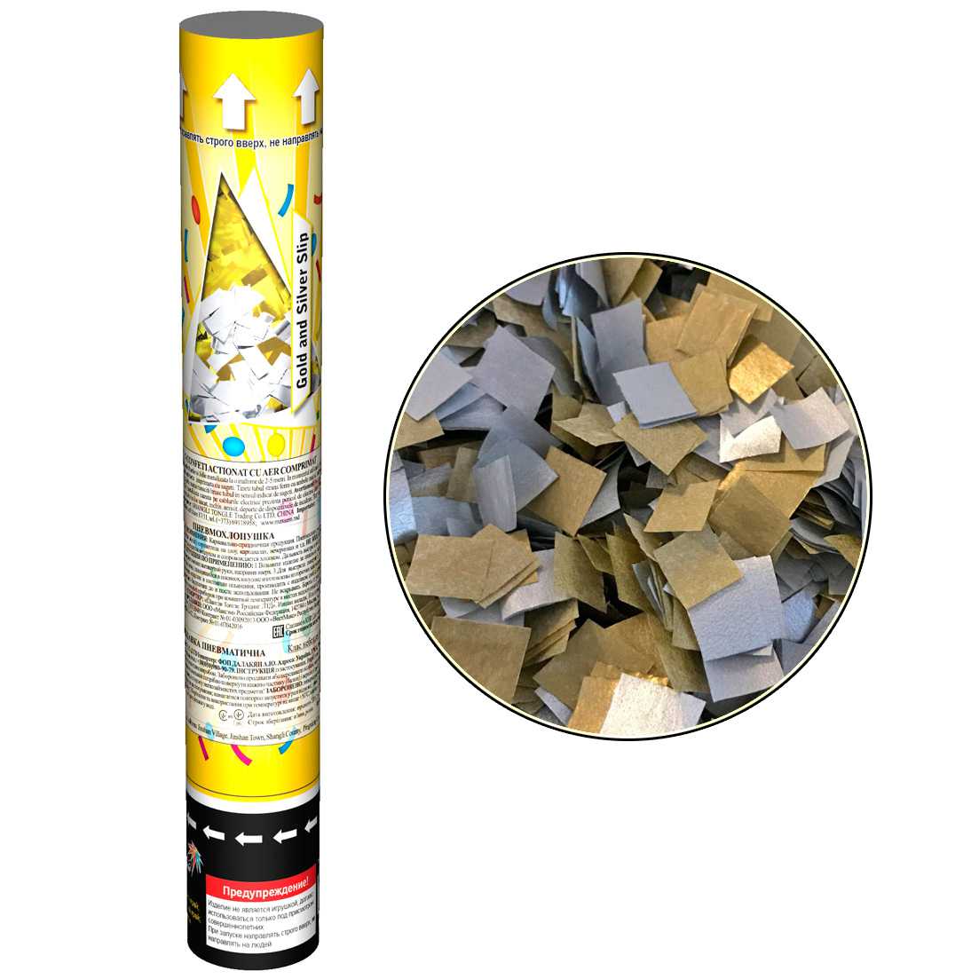 Пневмохлопушка CM033 "GOLD AND SILVER" (конфетти прямоугольное золото, серебро) 30см