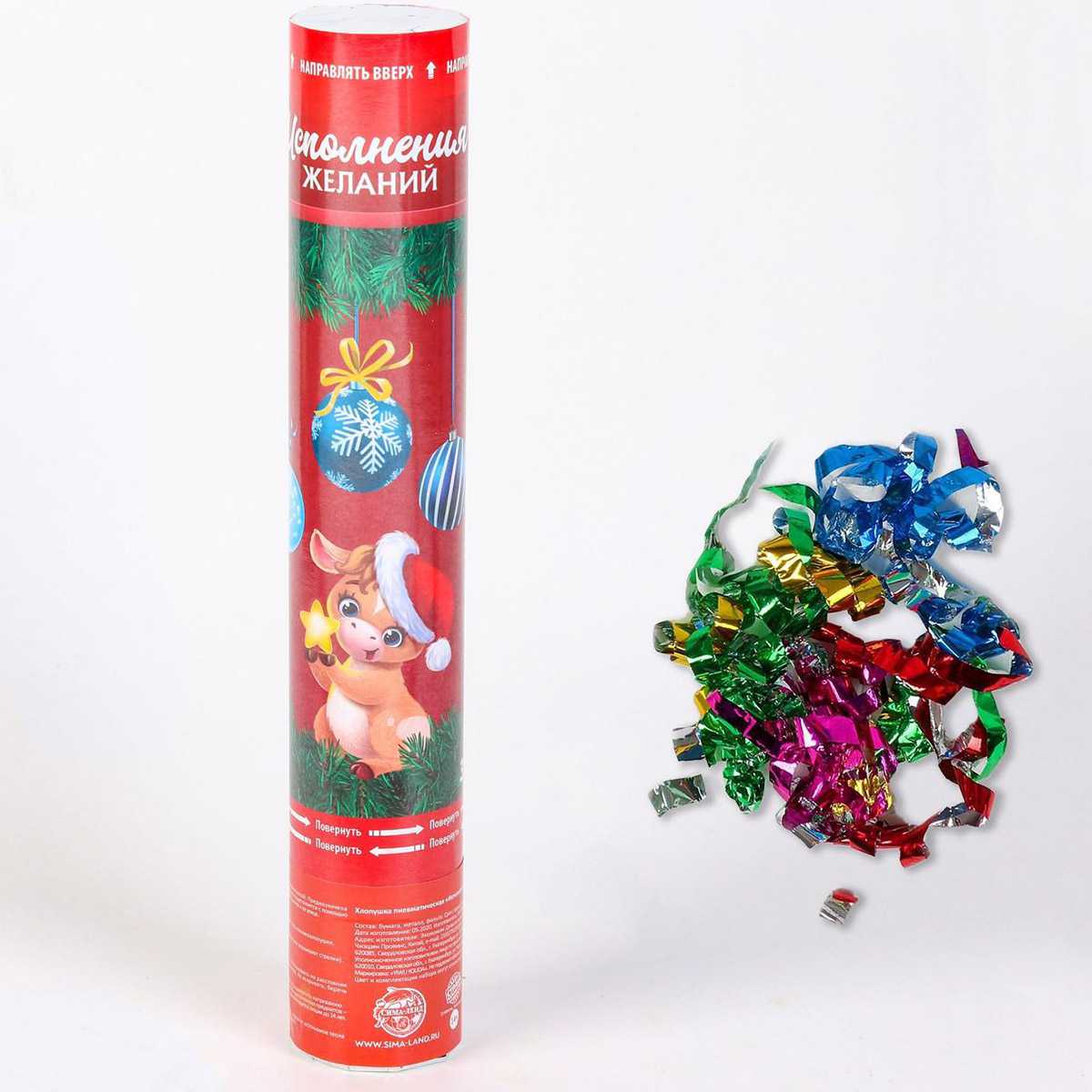 Пневмохлопушка "Исполнения желаний! Коровка" (конфетти и серпантин, фольга) 30см