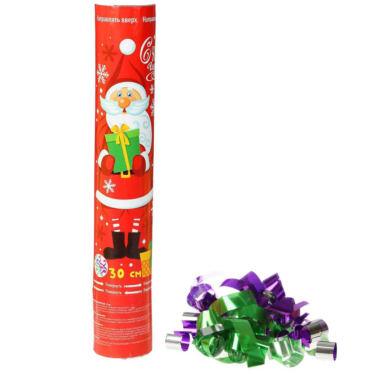 Хлопушка выстреливает ленты яркого фольгированного серпантина на длину 6-8 метров.