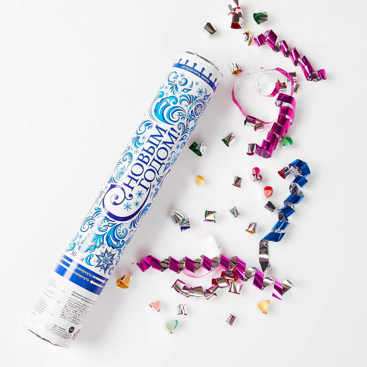 Пневмохлопушка "С Новым годом! Гжель" (конфетти и серпантин, фольга + бумажные вложения с пожеланиями) 30см