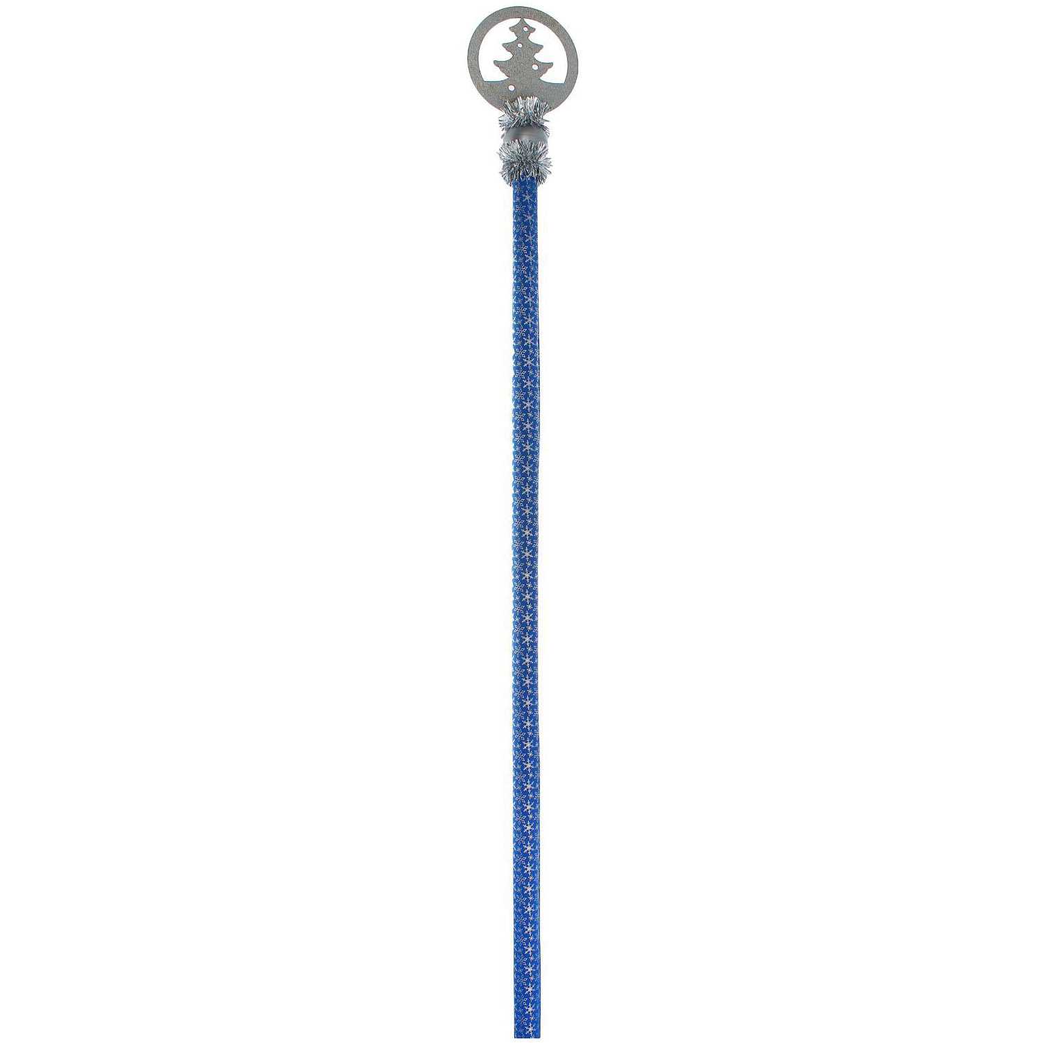 Посох для костюма Деда Мороза. Каркас деревянный, посох отделан тканью, верхушка пластиковая с изображением елочки. Цвет посоха синий с серебром. Высота посоха - 180 см.