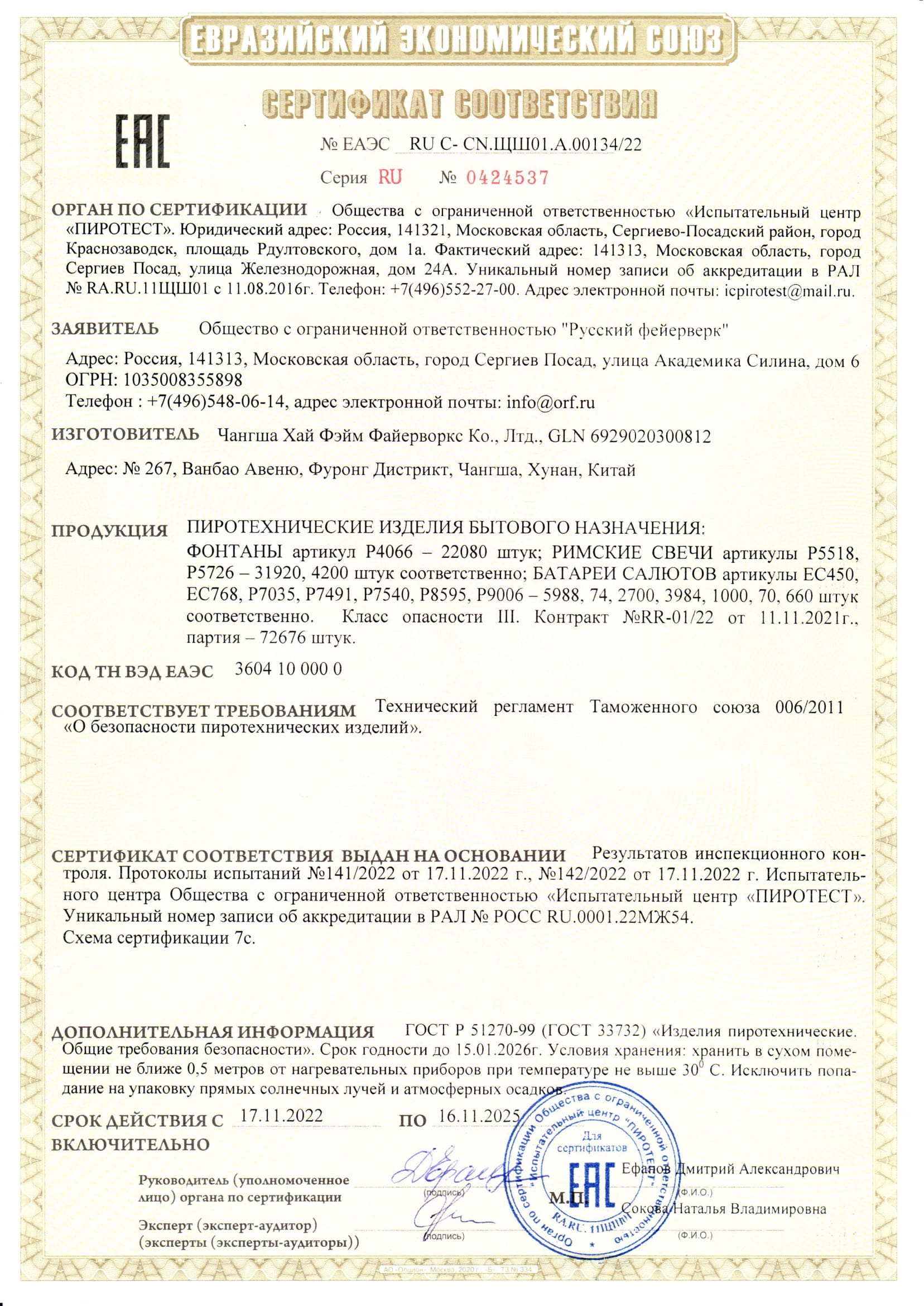 - Обратите внимание, что при покупке фейерверка Вы несете полную ответственность за соблюдение правил хранения, техники безопасности и инструкции по запуску изделия!