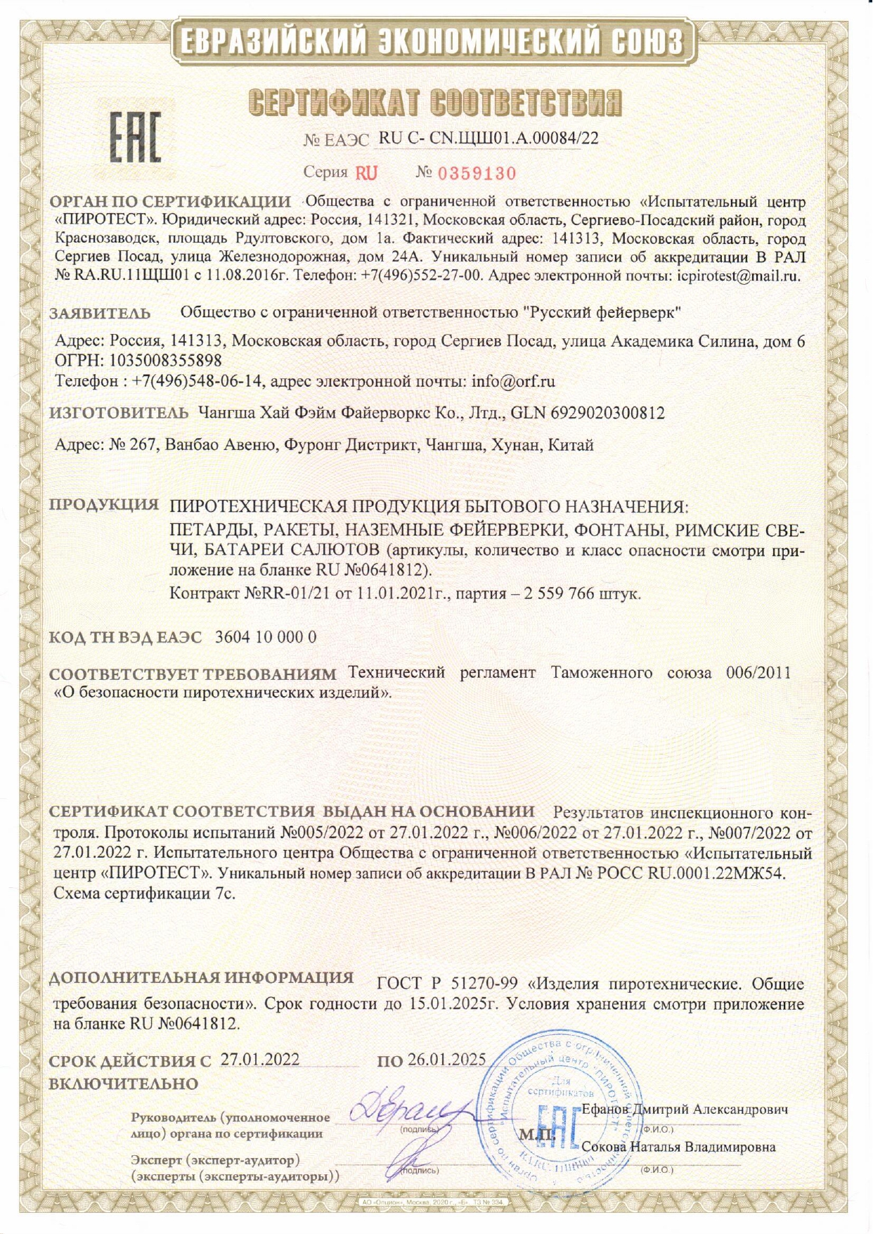 Магазин фейерверков ББ-Салют предоставляет гарантию на весь ассортимент интернет-магазина и розничных магазинов ББ-Салют! Мы торгуем пиротехникой самых лучших, проверенных торговых марок. Все изделия сертифицированы для продажи на территории России и имеют актуальный срок годности.