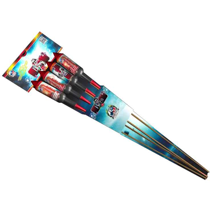 Мощные, практически двухдюймовые ракеты, несущие красочные пиротехнические эффекты, вместе с зарядом яркого настроения. Как и любая другая ракета, идет в комплекте с деревянным стабилизатором. Это облегчит запуск и обезопасит Вас от возможных отклонений ракеты в ходе полета. Превосходные эффекты напоминают полноценный фейерверк: малиновые и нежно-голубые кометы с белоснежными хвостами, переходящими в белое мерцанием звезд, красные огни и белоснежные стрелы. Упаковка из 4 красочных ракет позволит Вам вдоволь насладиться зрелищем!