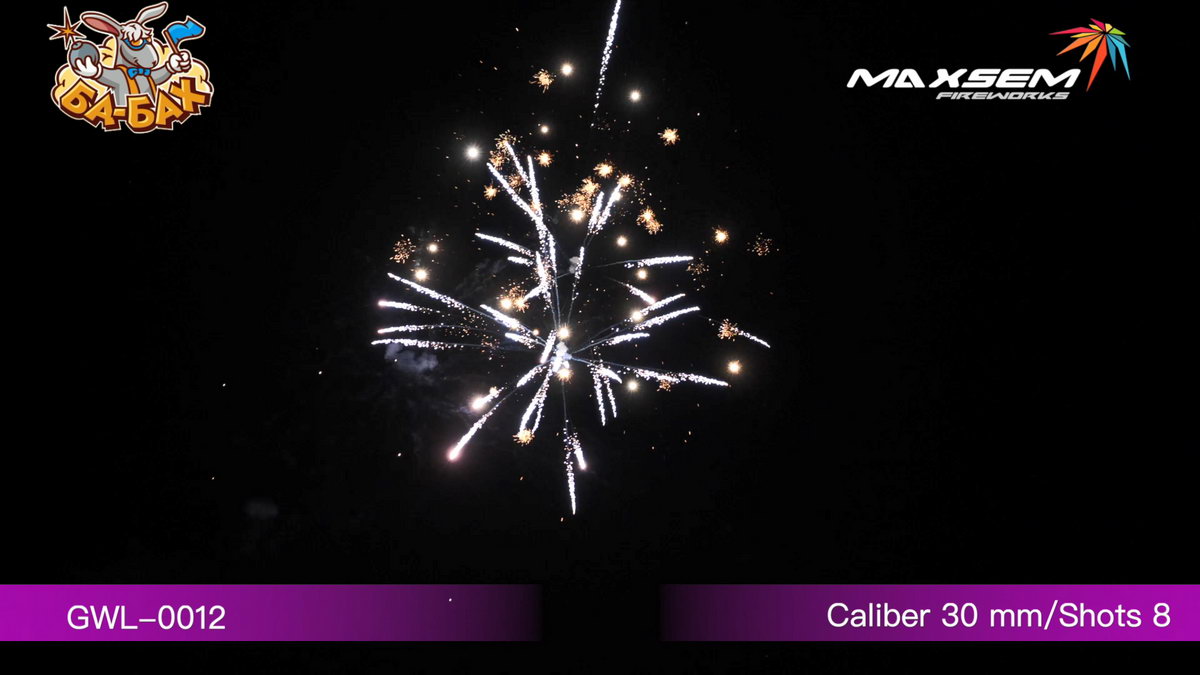 1. Серебряные форсы с красными огнями. 2. Серебряные форсы с оранжевыми огнями. 3. Золотая пальма с синими мерцающими огнями. 4. Серебряные форсы с золотым мерцанием и облаком треска.