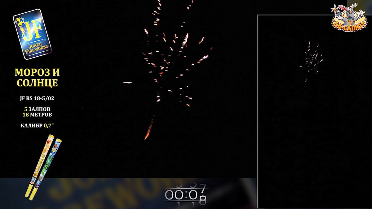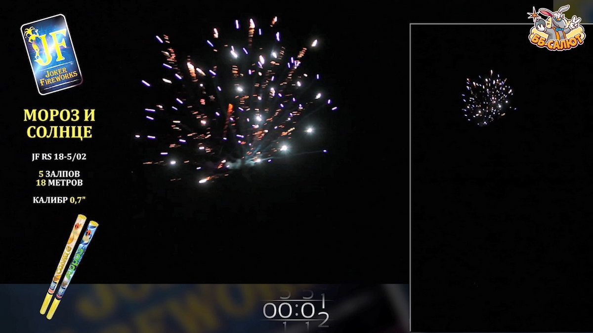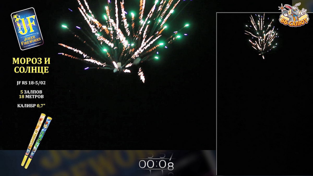 1. Свеча 1 - Синие кометы с белым мерцанием, синие кометы с красными звёздами, хризантема. 2. Свеча 2 - Красно-зелёная волна, зелёная волна с белым мерцанием, синяя волна.
