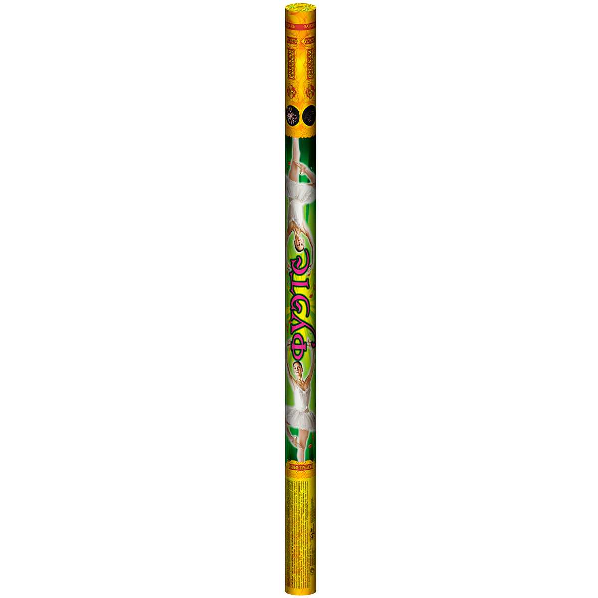 "Римская свеча Фуэте устраивает в небе настоящий танец огня: зажигает с эффектным треском золотые трассы из красных и белых огней. "