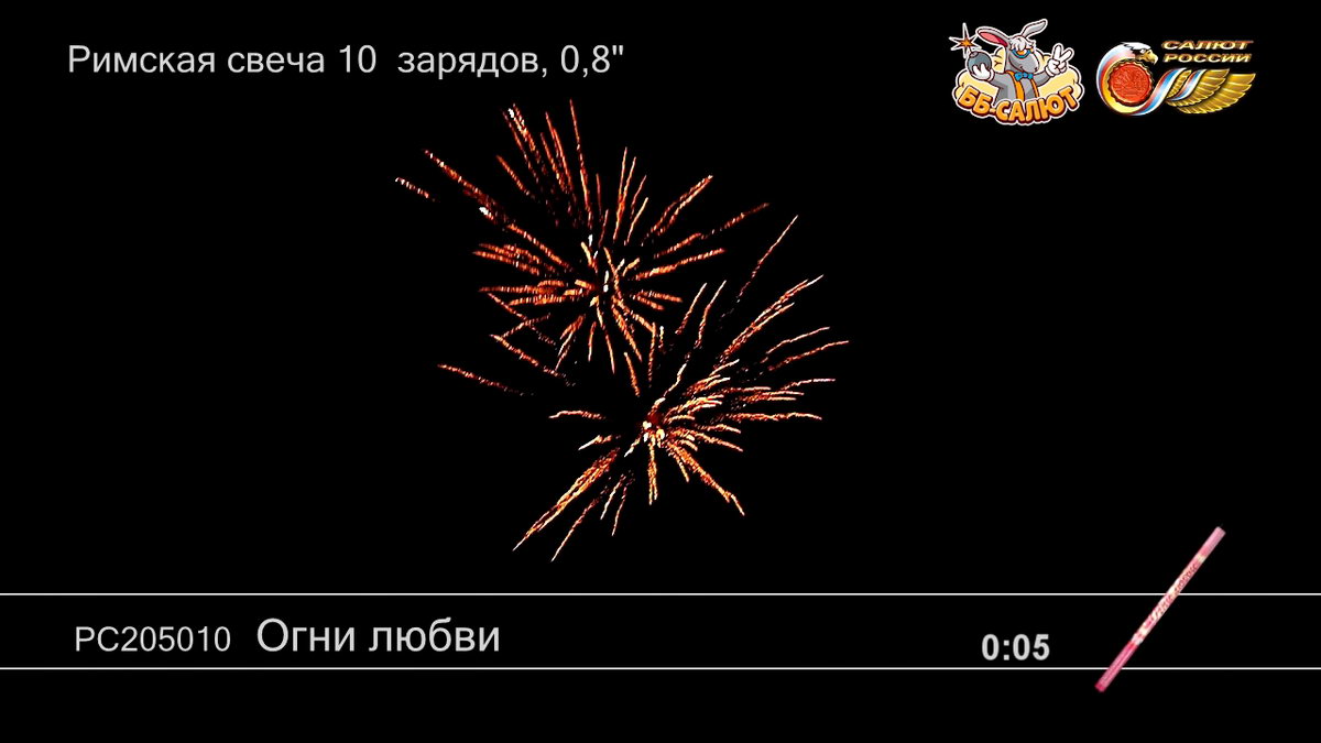 Римские свечи - длинные картонные трубки, которые выстреливают небольшое количество фейерверочных зарядов, обычно не более 10. Некоторые несознательные граждане стреляют римские свечи, держа их в руках. Это опасно, мы категорически не рекомендуем так делать! Дело в том, что картон, из которого изготовлена свеча - толстый и крепкий, но все же картон. При нештатном срабатывании заряд внутри свечи может прожечь картонную оболочку и нанести серьезную травму руки, даже если стреляющий надел толстые перчатки.
