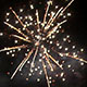 После каждого залпа в небо летит яркая крупная звезда зеленого, фиолетового или красного цвета. В небе они могут разрываться по-разному. Иногда красными огнями, за которыми тянется золотой шлейф, иногда фиолетовыми и синими огоньками с трещащими вокруг искрами. Самый громкий эффект - раскрывающиеся золотистые искристые форсы в сочетании золотыми трещащими искрами.