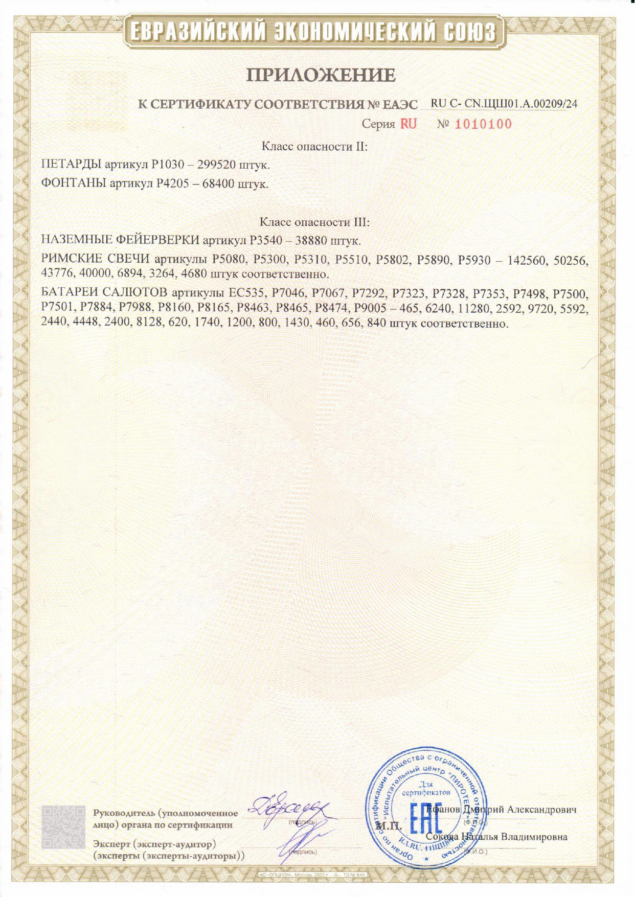 - К сожалению, мы не осуществляем доставку пиротехники в Калининградскую область, а также за пределы Российской Федерации.