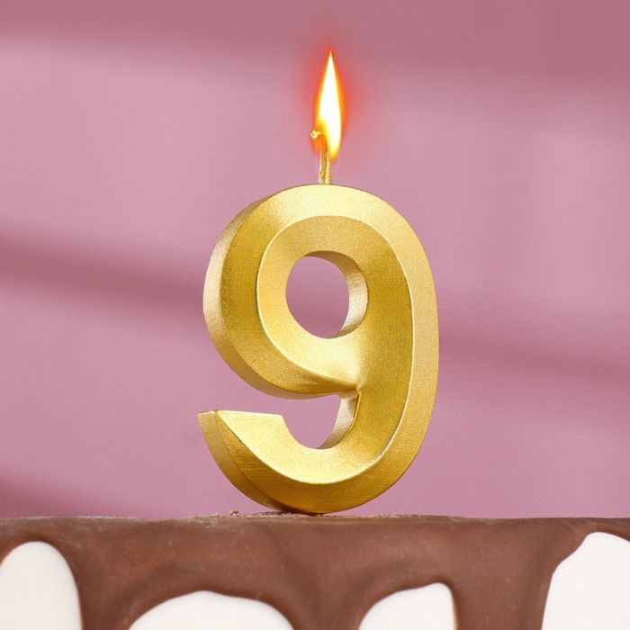 Свеча для торта "Грань" золотая - цифра "9" 9,5 см
