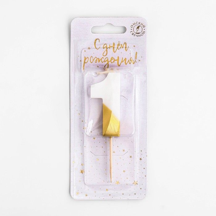 Свеча для торта "Мороженое" бело-золотая - цифра "1"