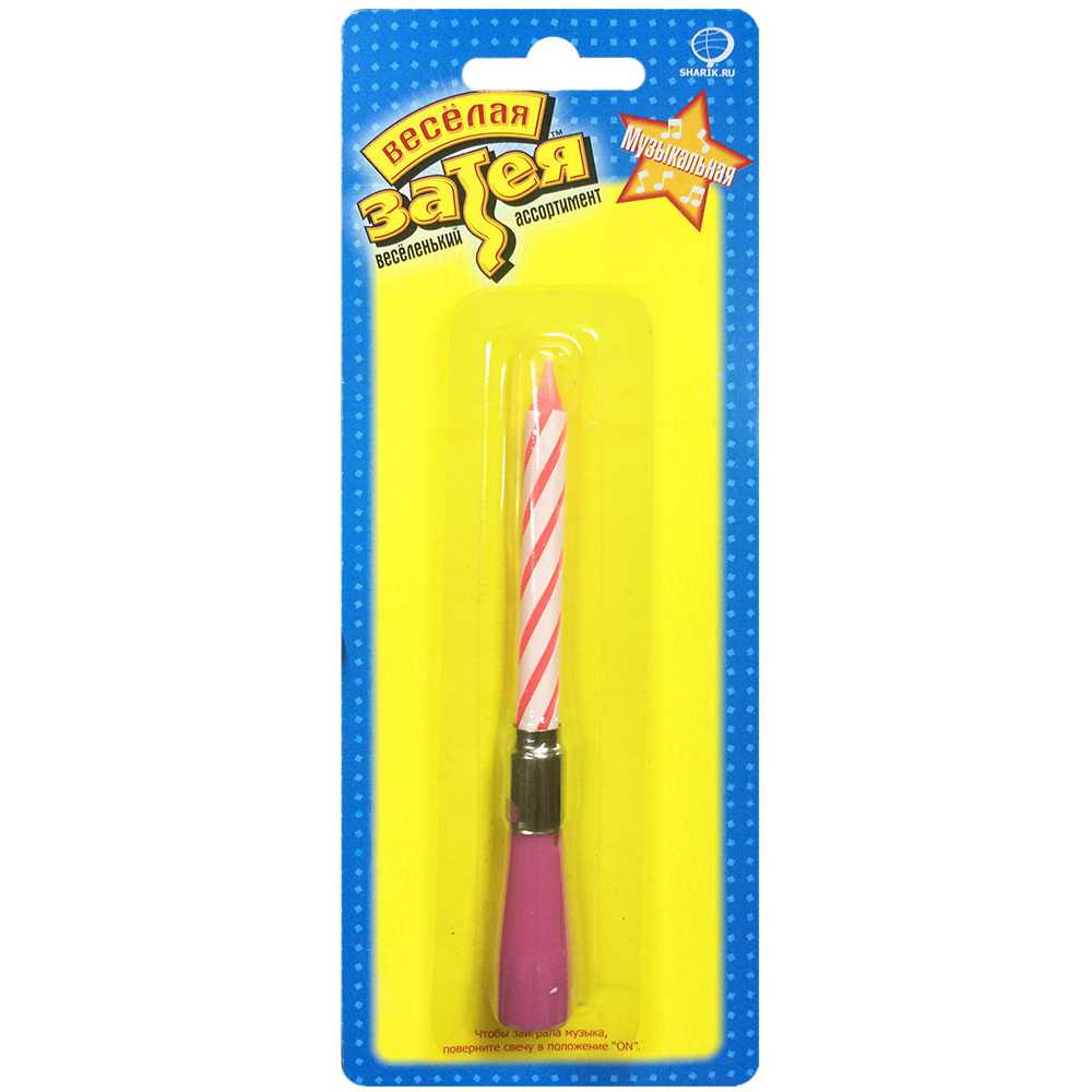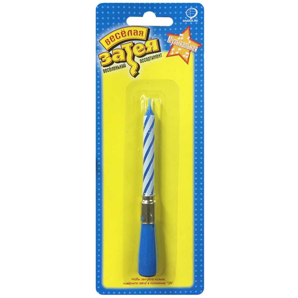 Музыкальная свеча - вариация на тему "музыкального цветка-лотоса". Конструкция этого изделия достаточно проста: это свеча ярко-голубого цвета, высотой порядка 8 см, поверните золоченое основание свечи - зазвучит мелодия "Happy Birthday to You". В отличии от музыкального цветка, проигрывание музыки никак не связано с горением свечи, музыка включается и выключается отдельно.