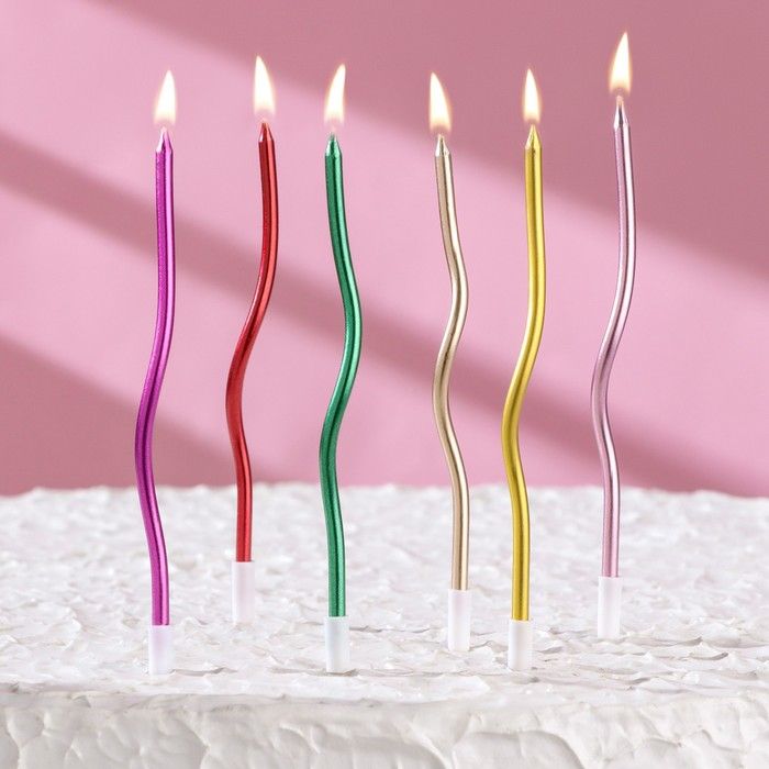 Свечи для торта коктейльные "Серпантин" разноцветные (упаковка 6 шт.)