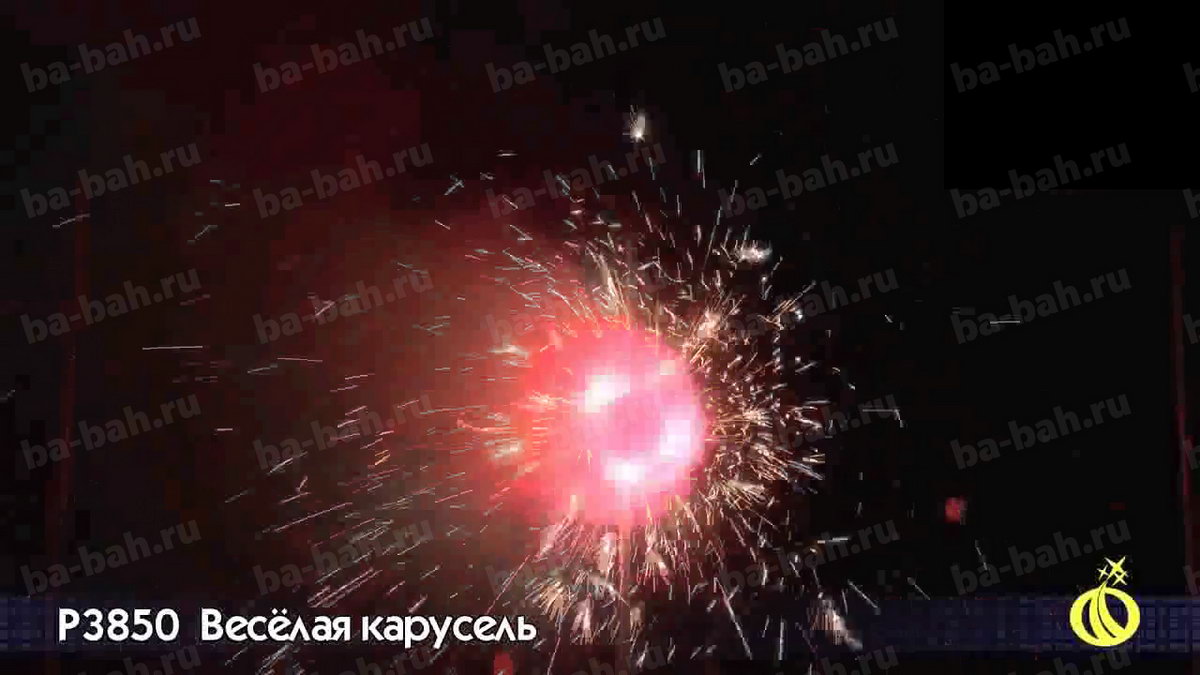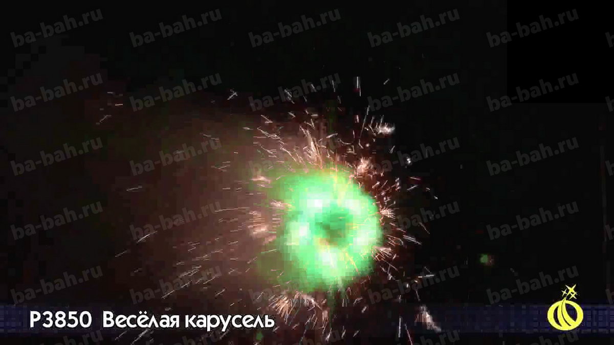Запуск фейерверков типа "огненная вертушка" или "солнце", к которым относится "Веселая карусель" требуют несколько большей подготовки к запуску, по сравнению с обычными салютами. Убедитесь, что в месте пуска у вас будет вертикальная поверхность для крепления колеса. Идеально для этой цели подходит отдельно стоящий столб. Если столба нет - подойдет ровный ствол высокого дерева. К колесу прикладывается гвоздь - это не какой-то специальный гвоздь, а совершенно обычный, который можно заменить любым другим. Колесо крепится через отверстие в центре. Прибивайте очень аккуратно, чтобы не повредить конструкцию! Поджигайте фитиль и немедленно отходите. "Веселая карусель" - очень мощная вертушка, полыхающие искристые языки создают окружность диаметром до 6 метров!!! Эффект фонтанов несколько раз меняется: зеленое пламя с золотыми искрами, красное пламя с мерцающими искрами, белое пламя с красно-зелеными искрами.