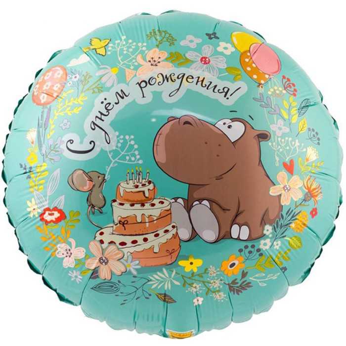 Воздушный шарик 18" «С днём рождения! Бегемот с тортом»
