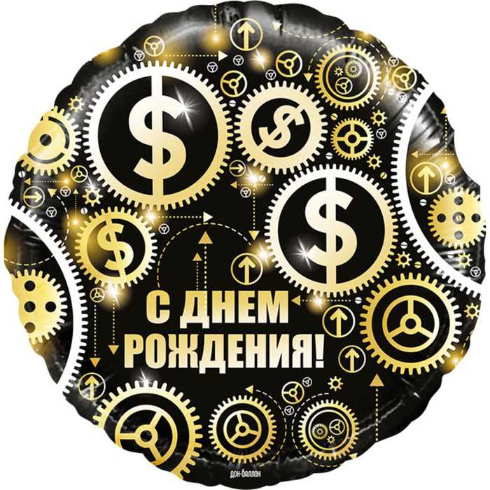 Воздушный шарик 18" «С днём рождения! Доллары»