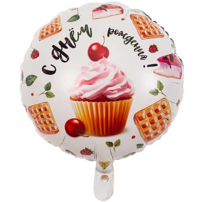 Воздушный шарик 18" «С днём рождения! Капкейк с вишенкой»