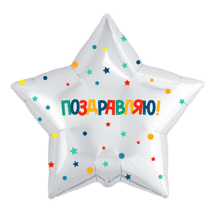 Воздушный шарик 21" «Поздравляю! Звёзды, круги»