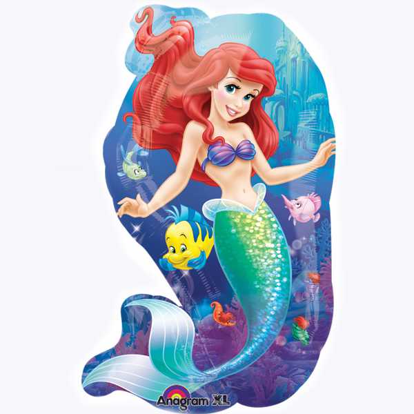 Огромный фольгированный шарик (более метра в высоту) - так называемая "ходячая фигура", в нижней части фигуры крепятся небольшие грузики, которые не дают ей улететь, но от легких движений воздуха фигура перемещается, будто "ходит". Персонаж - Русалочка Ариэль из диснеевского мультфильма "Русалочка" (Disney's The Little Mermaid). Изготовлен из качественной тонкой миларовой пленки (фольга на полимерной основе), материал не является токсичным. Шарик наполнен гелием, цена указана с учетом гелия.
