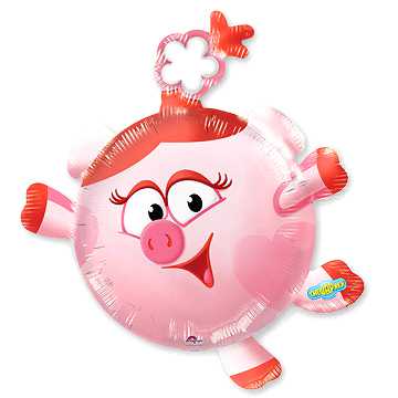 Большой фольгированный шарик сложной формы, персонаж из мультфильма "Смешарики" - свинка Нюша. Изготовлен из качественной тонкой миларовой пленки (фольга на полимерной основе), материал не является токсичным. Шарик наполнен гелием, цена указана с учетом гелия.