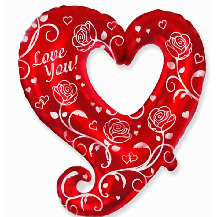 Большой фольгированный шарик в виде сердца, но не обычного, а сложной формы, состоящего как-бы из двух половинок, которые при надувании объединяются в единую форму. Шарик производит очень эффектное впечатление, выглядит стильно. Цвет - ярко-красный, с рисунками и надписями "I LOVE YOU". Изготовлен из качественной тонкой миларовой пленки (фольга на полимерной основе), материал не является токсичным. Шарик наполнен гелием, цена указана с учетом гелия.