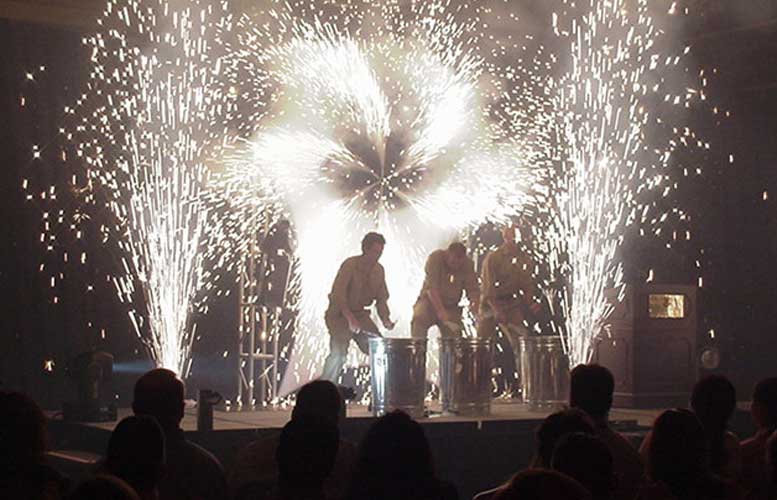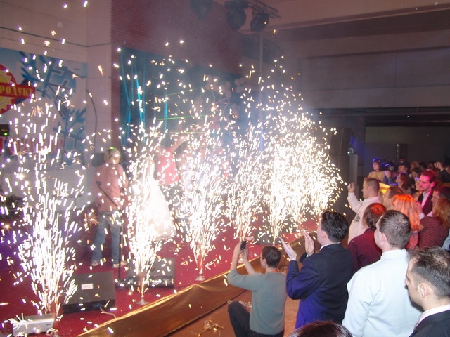 - На сцене во время проведения концерта, презентации или шоу. Холодные фонтаны используются во время кульминации шоу-программы, при появлении важных гостей, при демонстрации нового продукта;