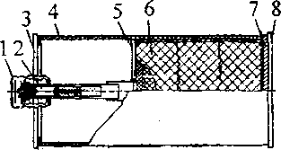 1 - колпачок; 2 - воспламенительное устройство; 3 - крышка; 4 - корпус; 5 - диафрагма; 6 - дымовая шашка; 7 - груз; 8 - дно