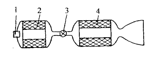 1 - воспламенительное устройство; 2 - блок газогенератора; 3 - регулятор; 4 - блок тяговой камеры